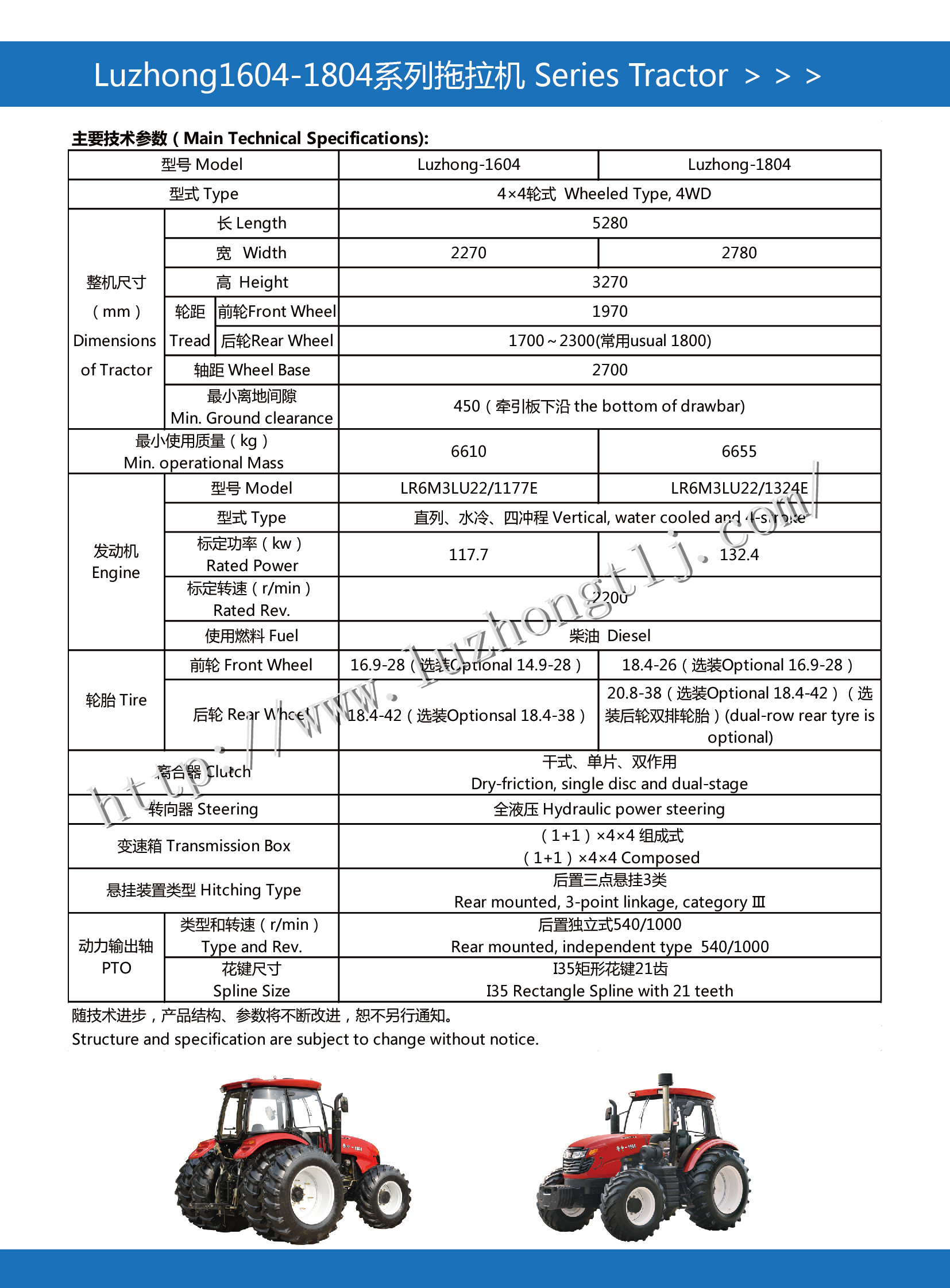 采用雙作用加大加強型離合器,16+16斜齒輪加強型底盤,加強型前橋,平地板,側置掛檔,可選爬行檔,檔位匹配合理。
