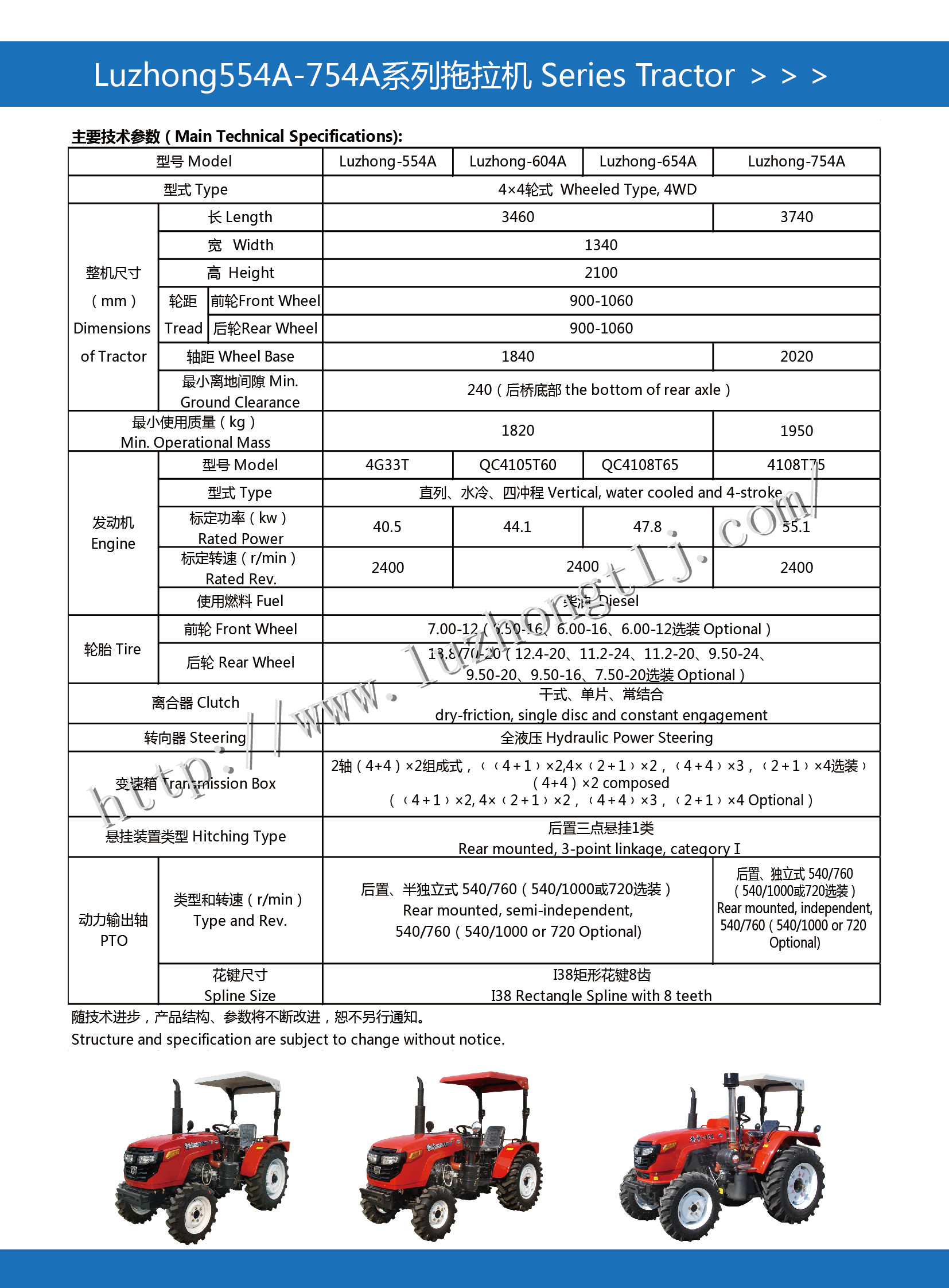 采用雙作用離合器,8+4檔中拖底盤,可選裝側變速掛檔,爬行檔,梭式換檔,檔位匹配合理。可選裝強壓提升器,提升力大,提升速度快,可靠性更高,可選裝雙輪胎,增加驅動力。